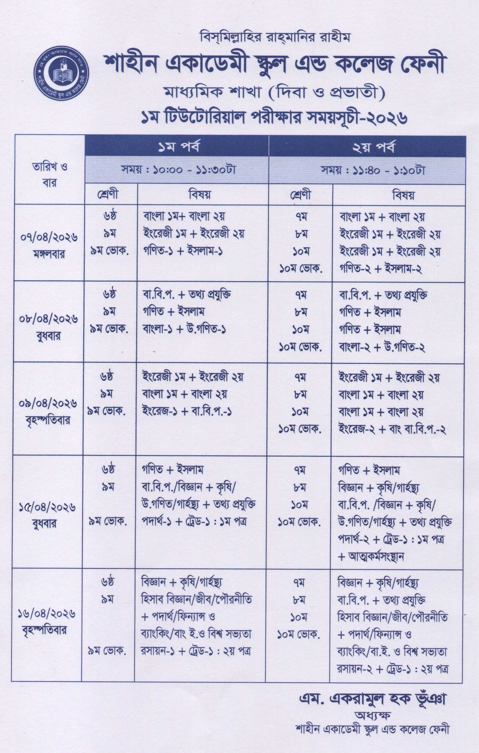 ১ম টিউটোরিয়ার পরীক্ষার সময়সূচী-২০২৬ (মাধ্যমিক শাখা)